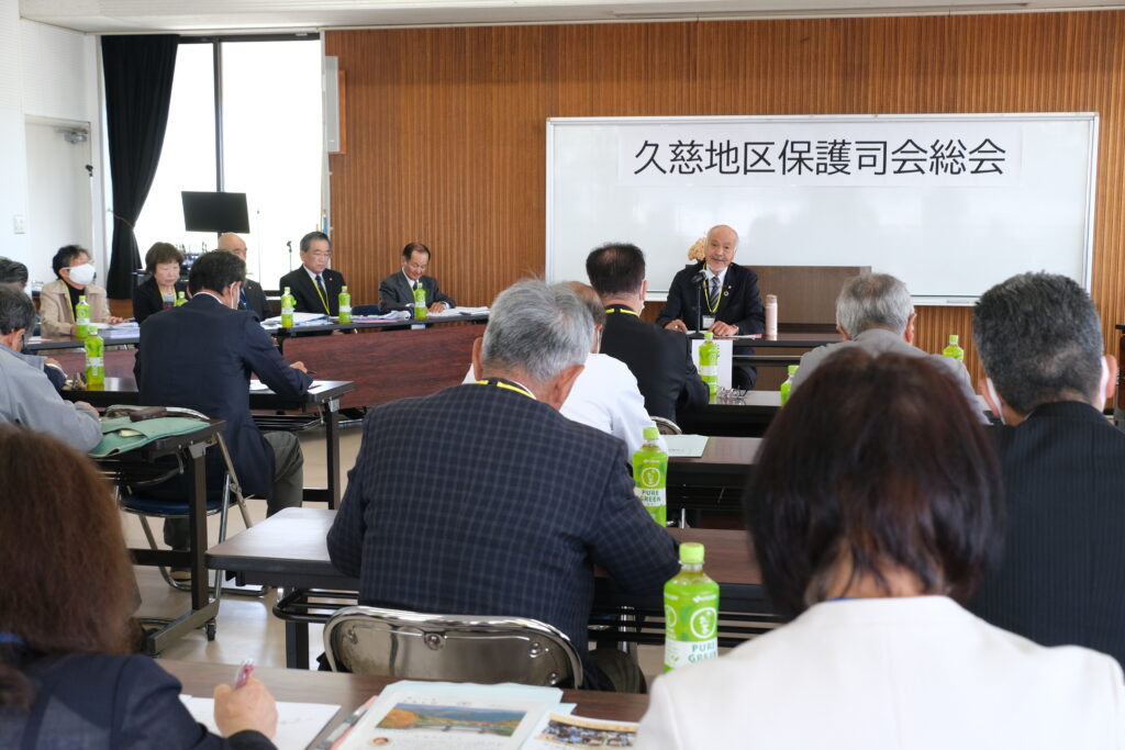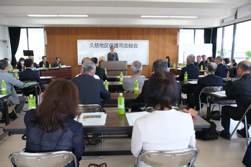令和7年度久慈地区保護司会定期総会が、令和7年5月7日(水)午前10時から常陸太田市商工会館大会議室で行われました。宮澤由紀水戸保護観察所長、宮田達夫常陸太田市長、奥山仁太田警察署長他を来賓にお迎えし、会員(常陸太田支部・大子支部)32名が出席して開催されました。総会では先ず森会長より「犯罪件数が件数が減少しているにもかかわらず、再犯率が増加する課題が残っています。それに対してより保護司の役割を一層重要視し、積極的な役割が求められます。久慈地区保護会は安心安全な地域づくりのため、保護司会一同が力を合わせてその役割を果たすよう努めて参りたい」と挨拶がありました。次に水戸保護観察所長、常陸太田市長、太田警察署長より挨拶をいただきました。